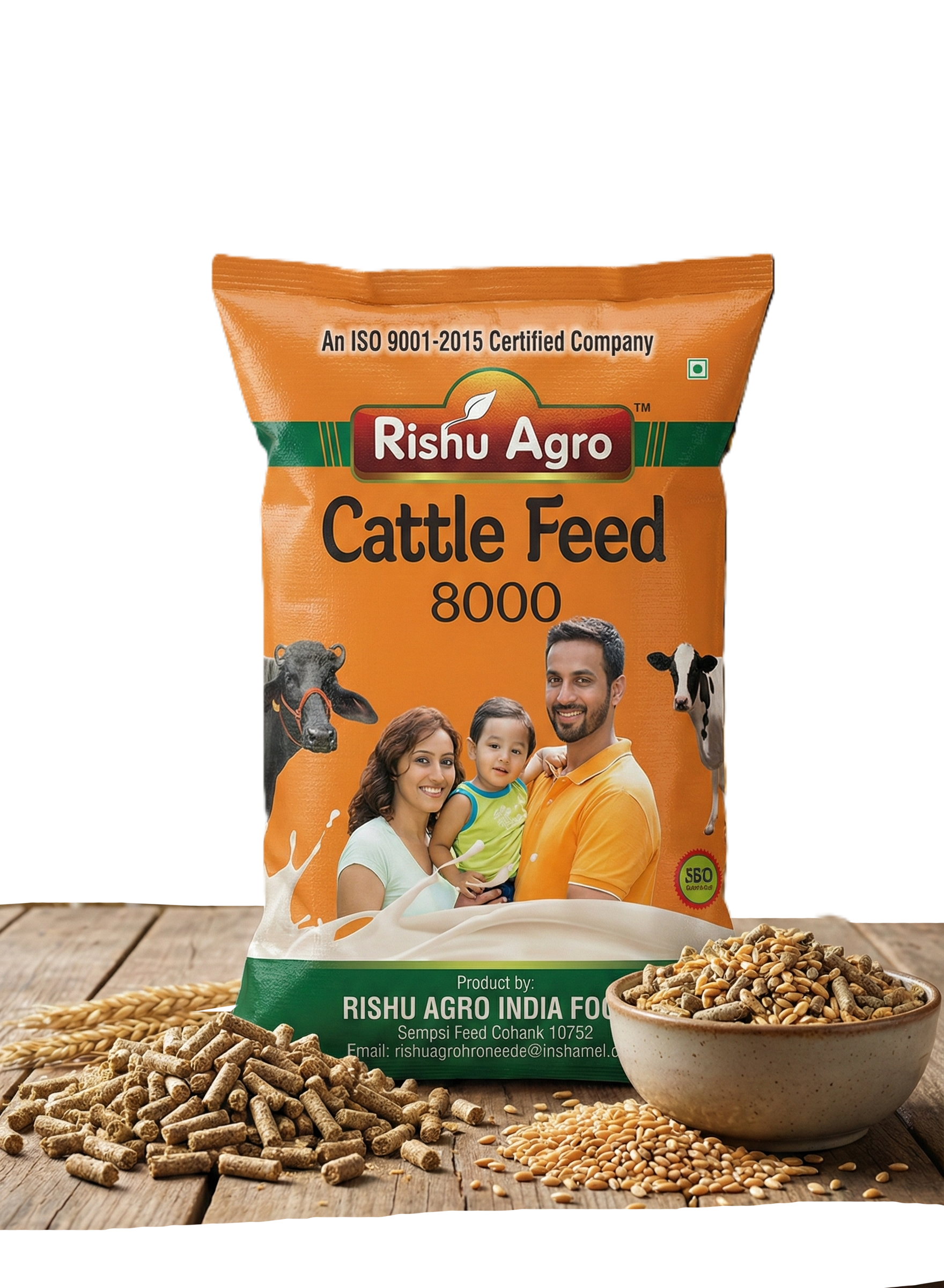 Rishu Agro Cattle Feed 8000: A balanced and nutritious diet for better livestock health and increased milk yieldPremium quality nutrition with the trust of an ISO 9001:2015 certified company, now available in 40kg packs. Quality Nutrition for Your Livestock—Rishu Agro Cattle Feed 8000.Product Name: Cattle Feed 8000.